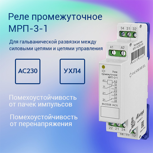 Реле промежуточное МРП-3-1 AC220В